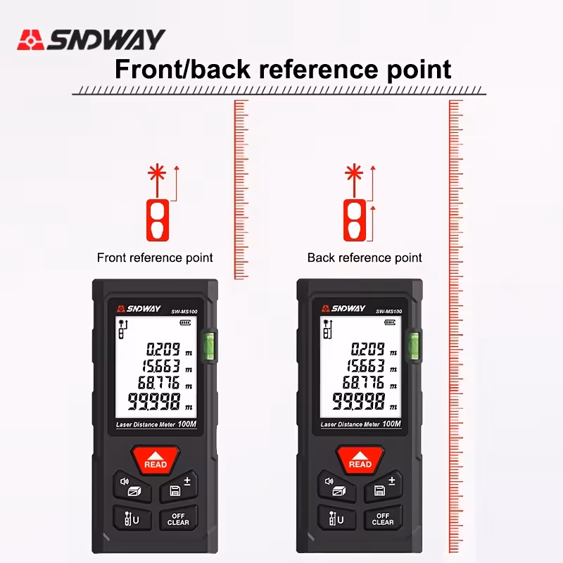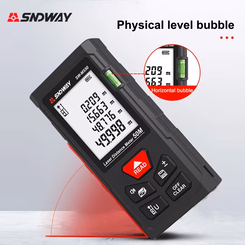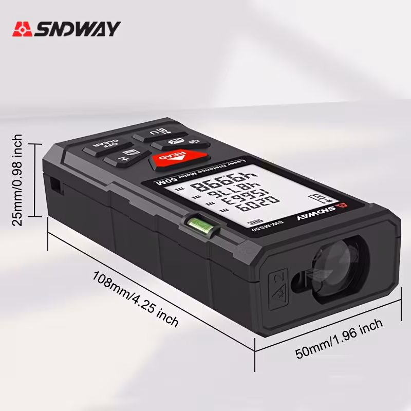 Measure distances with pinpoint accuracy using the SNDWAY Laser Distance Meter. This digital rangefinder provides millimeter-level precision, easy-to-read display, and battery-powered operation. Ideal for construction, DIY projects, or home measurement tasks
